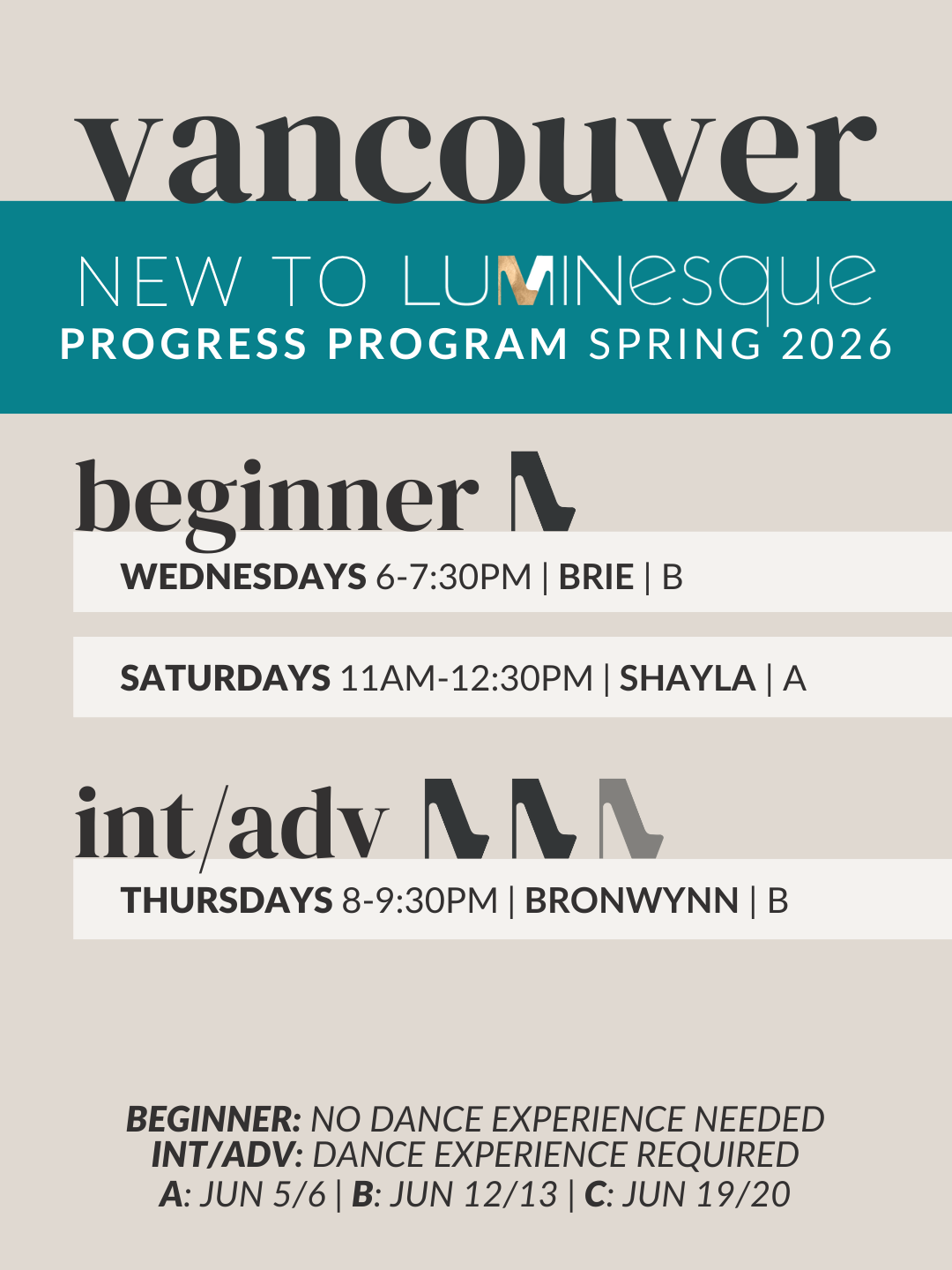Whether you’re learning how to dance, or leveling up your existing skills - our Progress program is a long-term investment in your dance journey. We are the largest Heels dance progressive program in the world, because we provide the best dance education. Even still, we are one of the lowest cost per hour progressive adult dance programs in BC, and work hard to keep dance accessible.