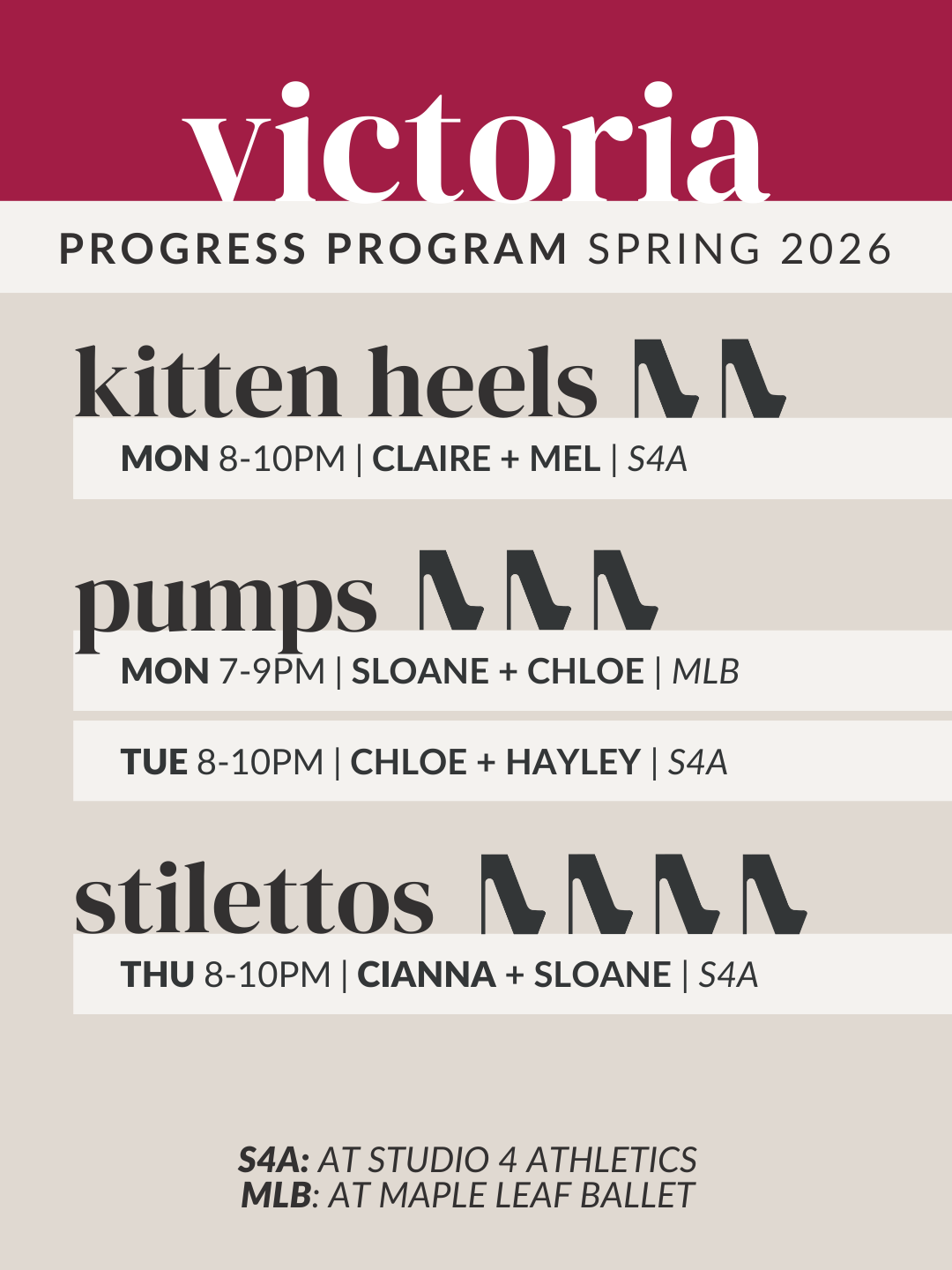 Whether you’re learning how to dance, or leveling up your existing skills - our Progress program is a long-term investment in your dance journey. We are the largest Heels dance progressive program in the world, because we provide the best dance education. Even still, we are one of the lowest cost per hour progressive adult dance programs in BC, and work hard to keep dance accessible.